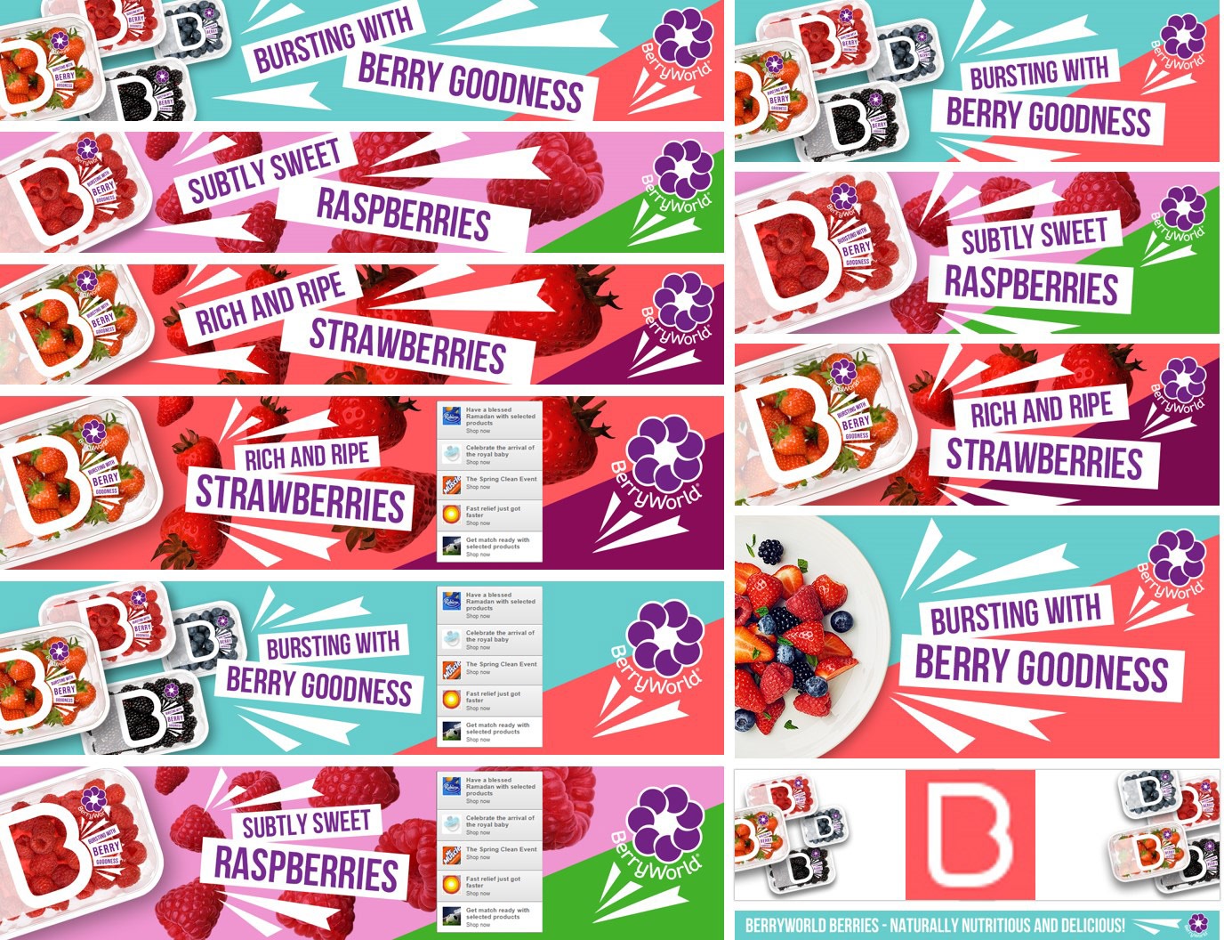 BerryWorld digital take-over campaign for Herotator Gateway, Herotator mobile, Desktop hero, Hero stripe, Ad tile, Product tile and Email graphic banner