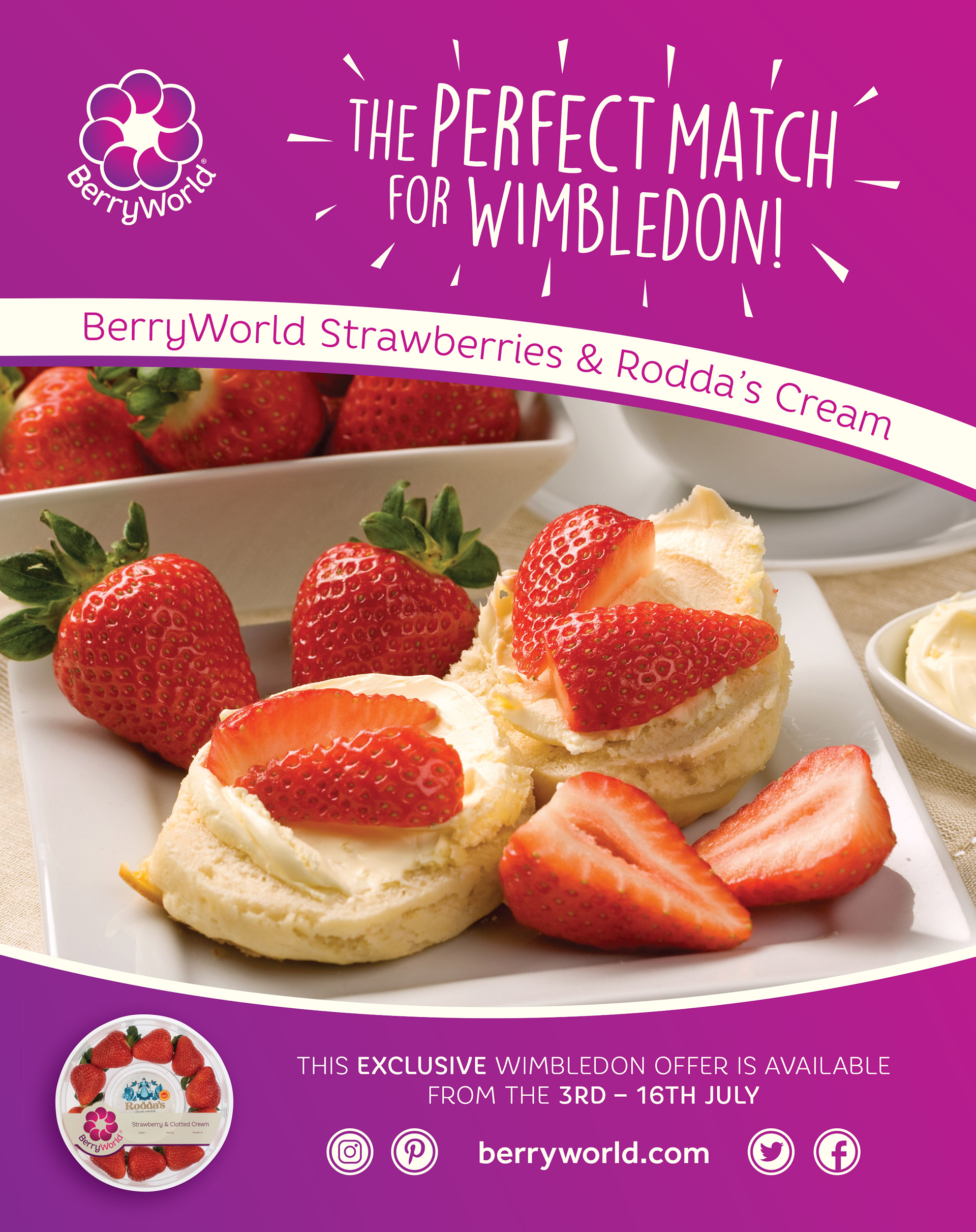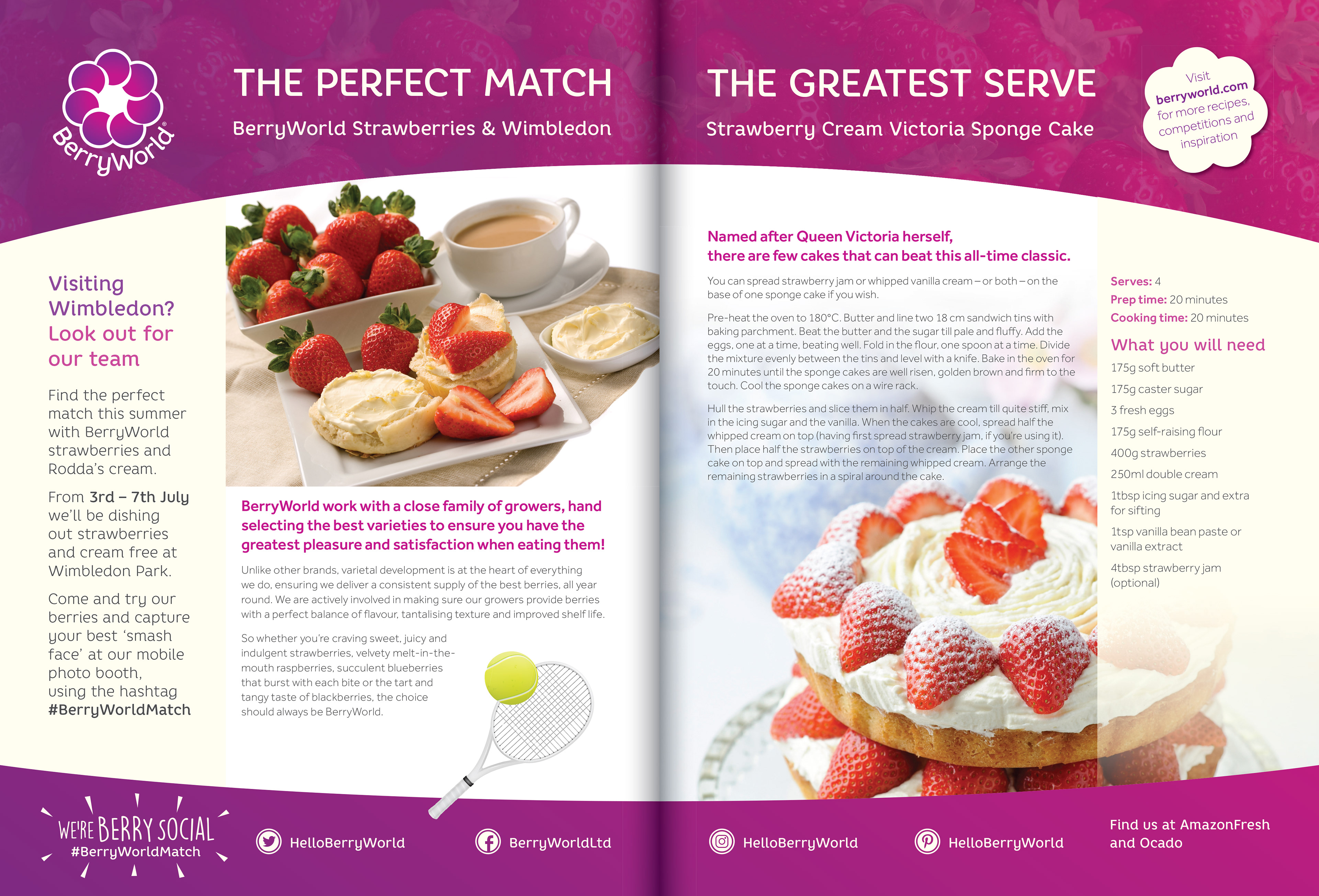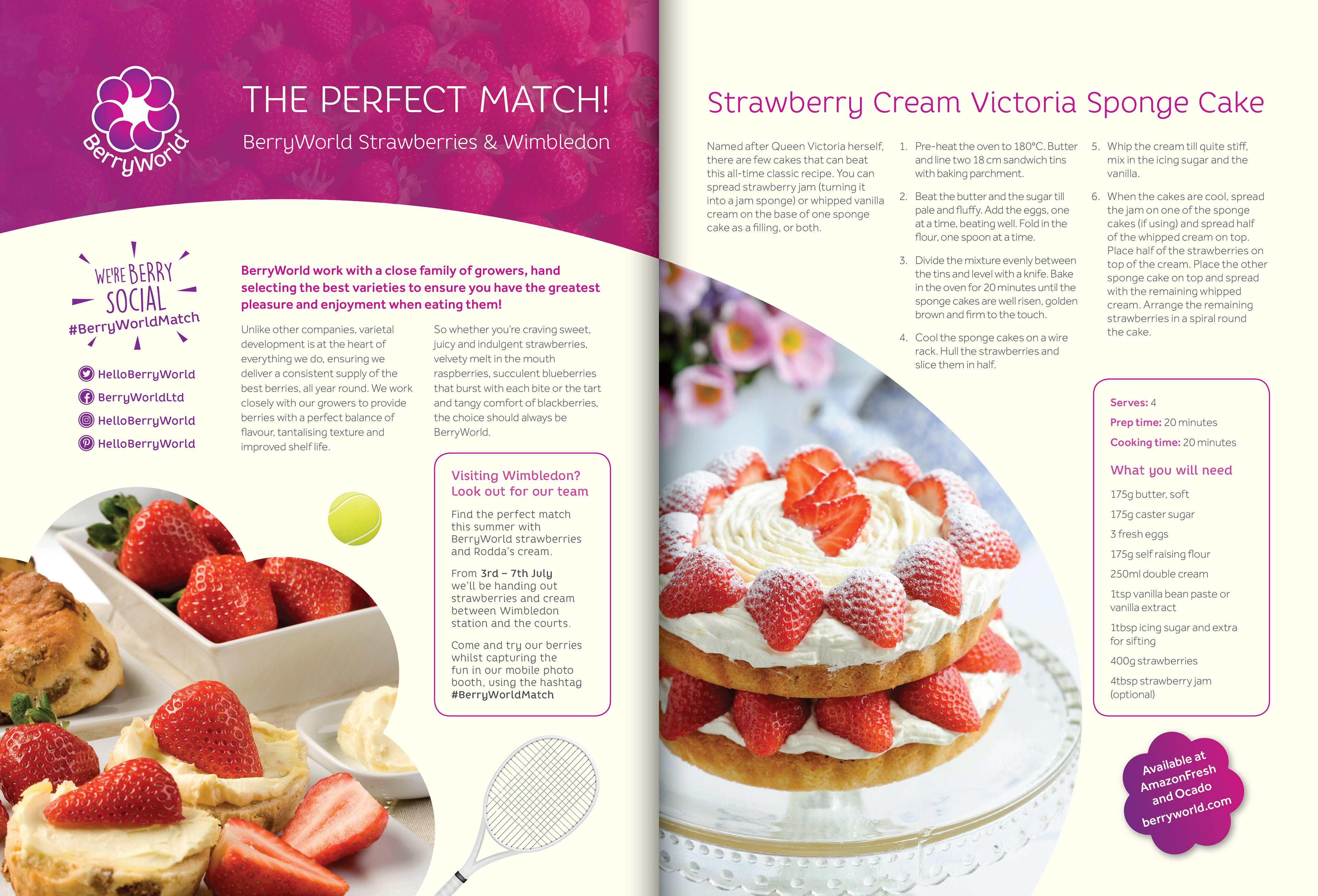 Sampling event at Wimbledon by BerryWorld in collaboration with Balance Magazine, including associated press advertising and social media coverage