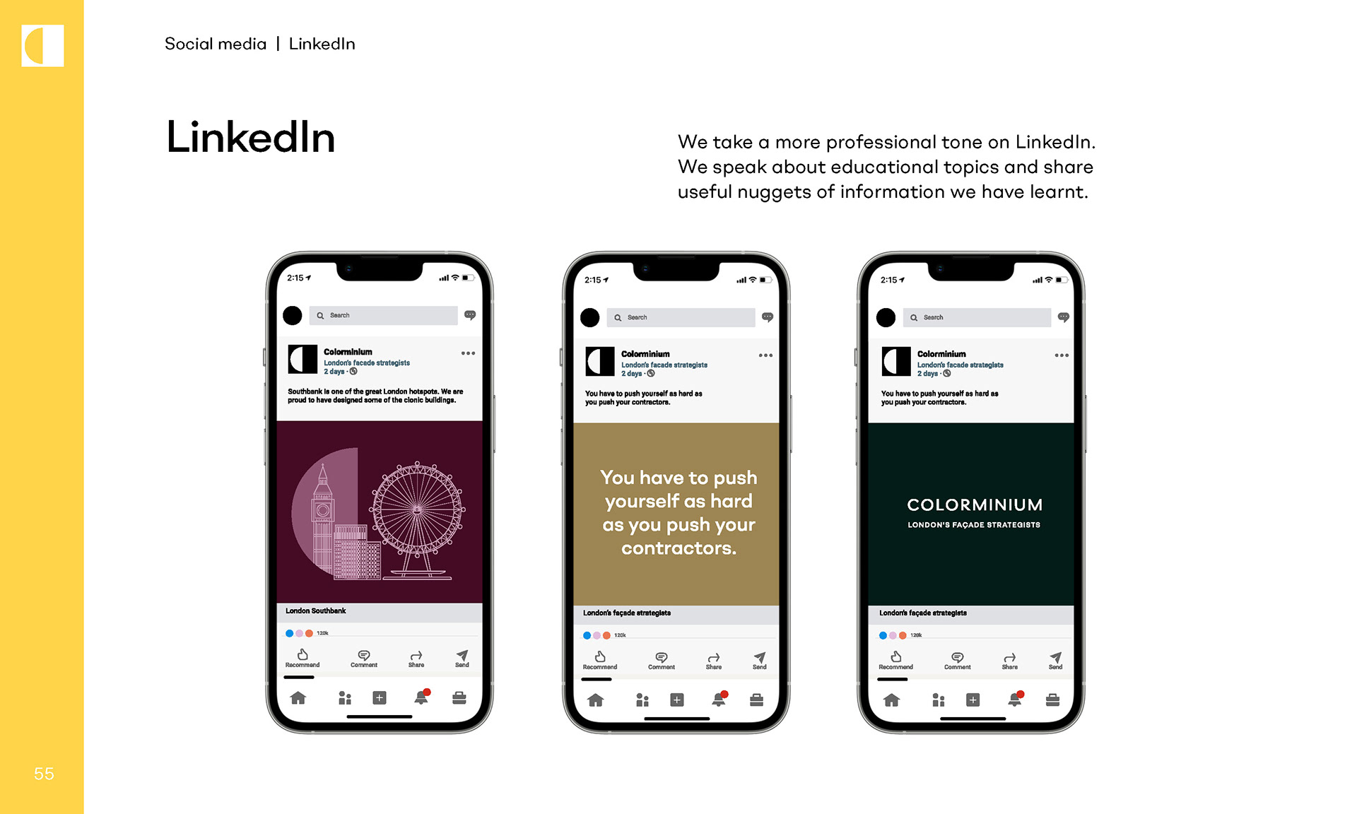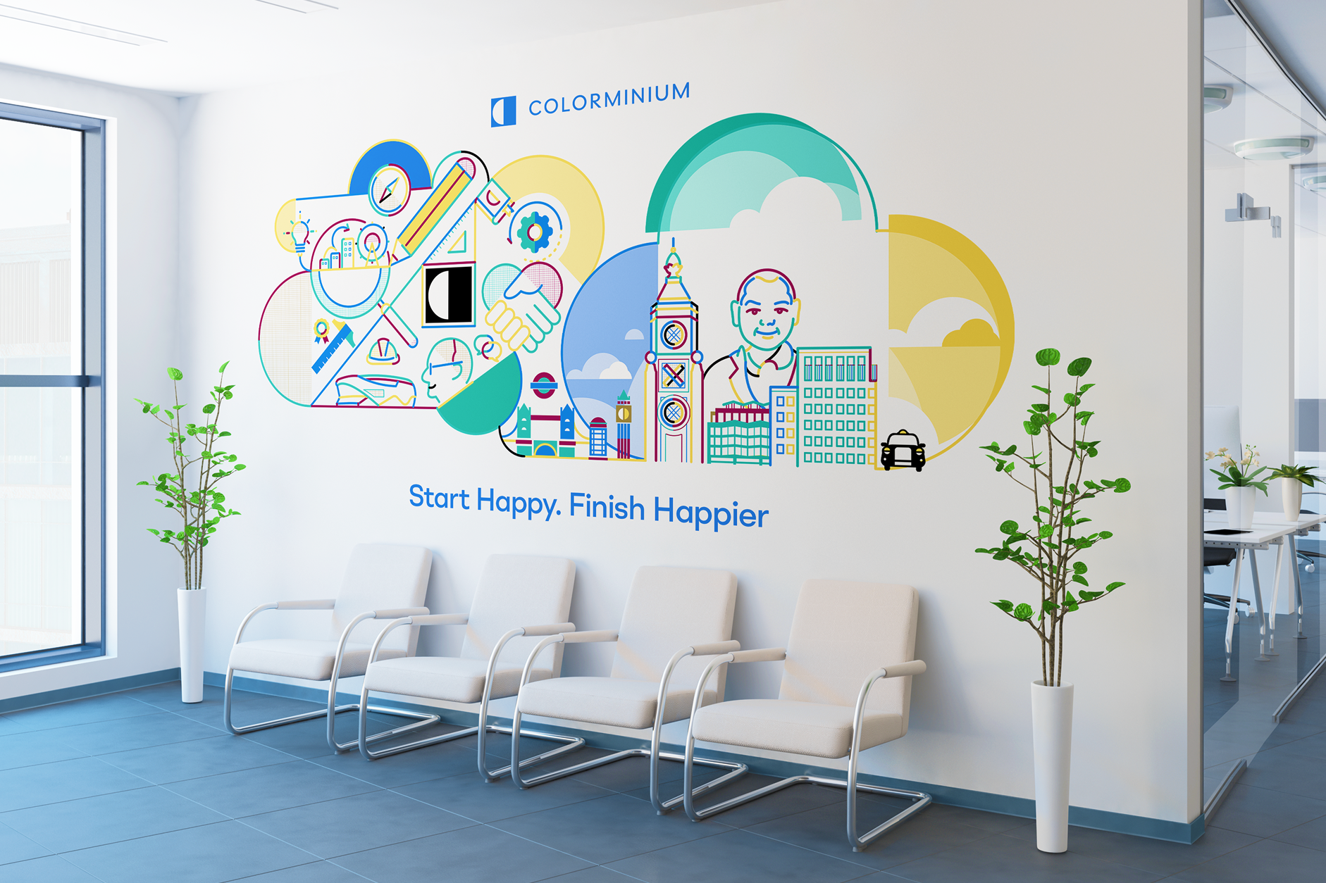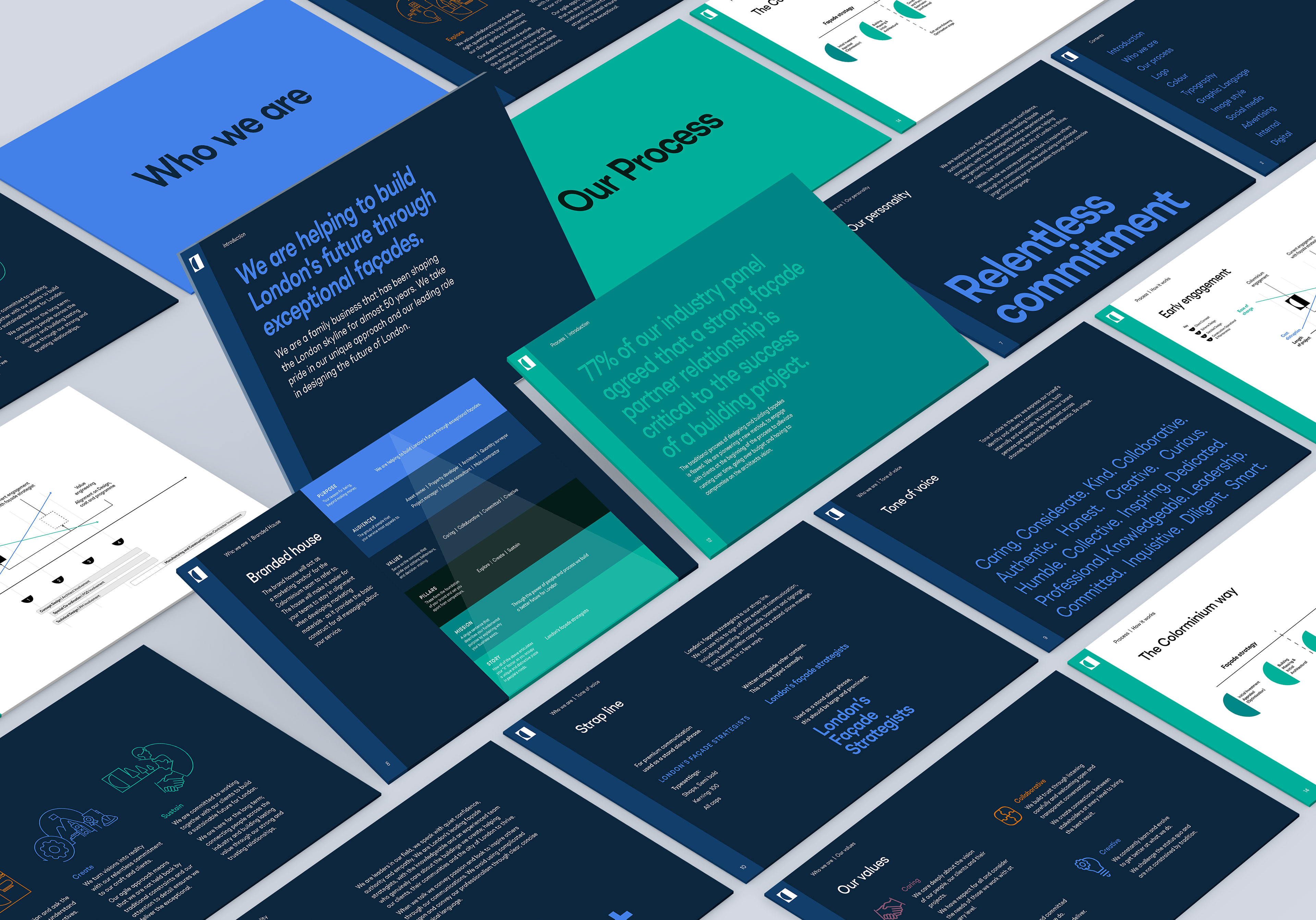 Colorminium is a leading name in the UK construction industry that's been shaping the London skyline for almost 50 years. The rebrand they wanted was also an opportunity to rethink their business model in order to win more clients. The outcome was a new brand story of “London’s facade strategists” and an animated video that sold the promise of ‘finish happier’ across all of their customer communications.