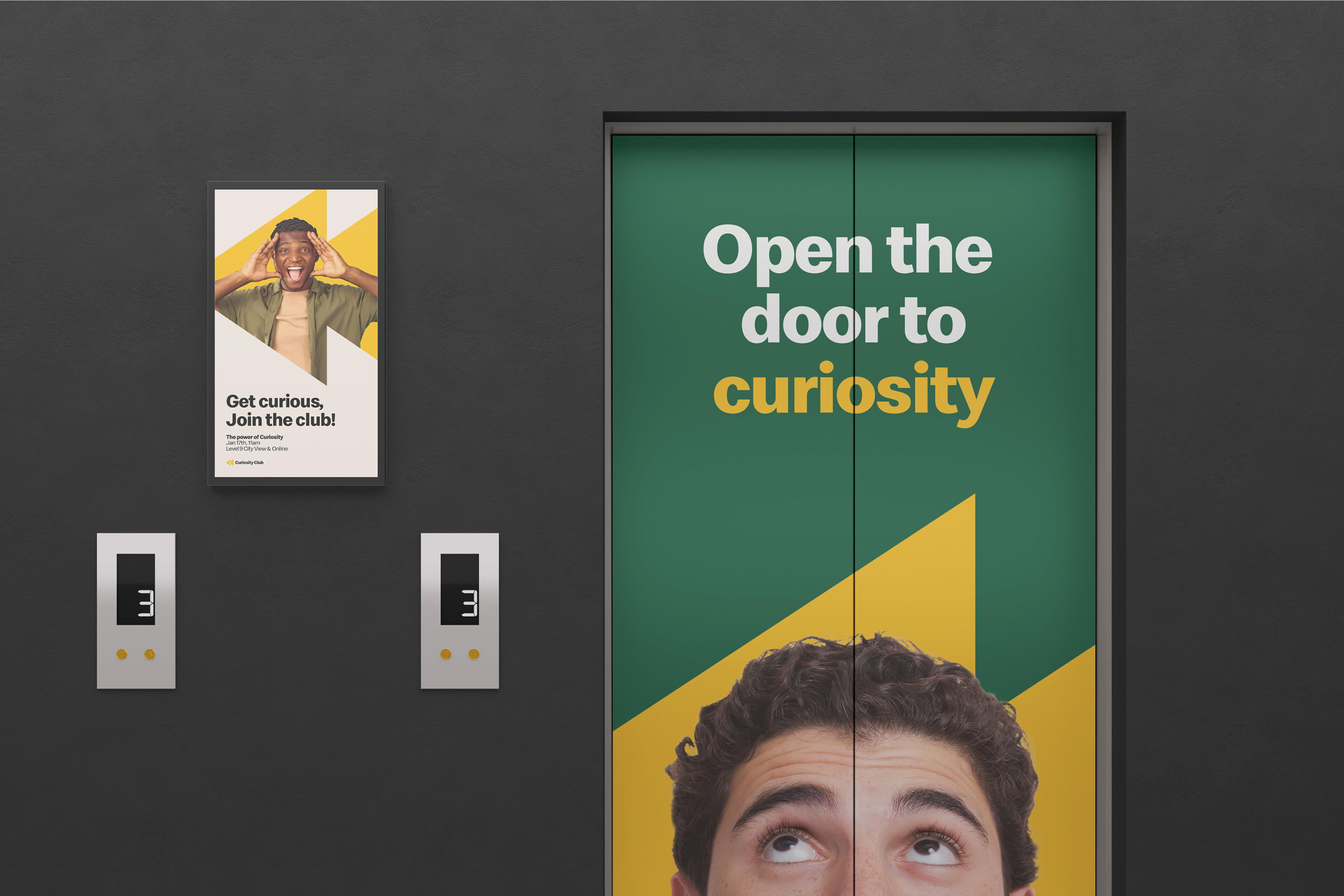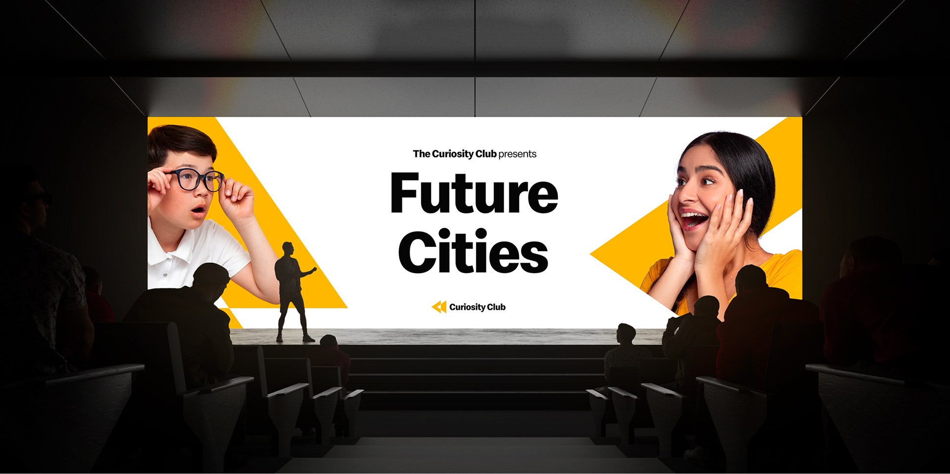 A visual identity suite for Curiosity Club was created that celebrates multiple themes, including exploration and innovation, suitable for use across everything from emails, presentations and placemaking graphics to event posters, apparel and merch.