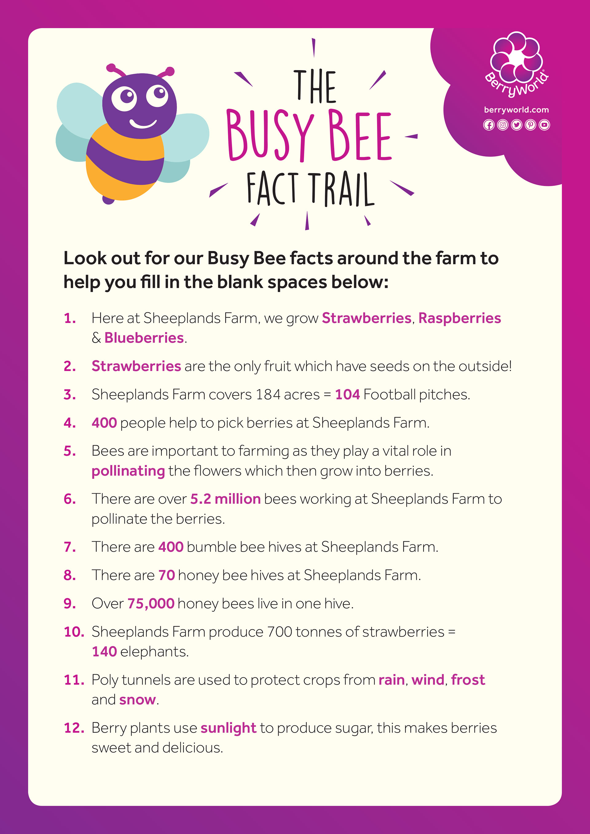 Children's activity booklet and 'Busy Bee' Q&A quiz sheet