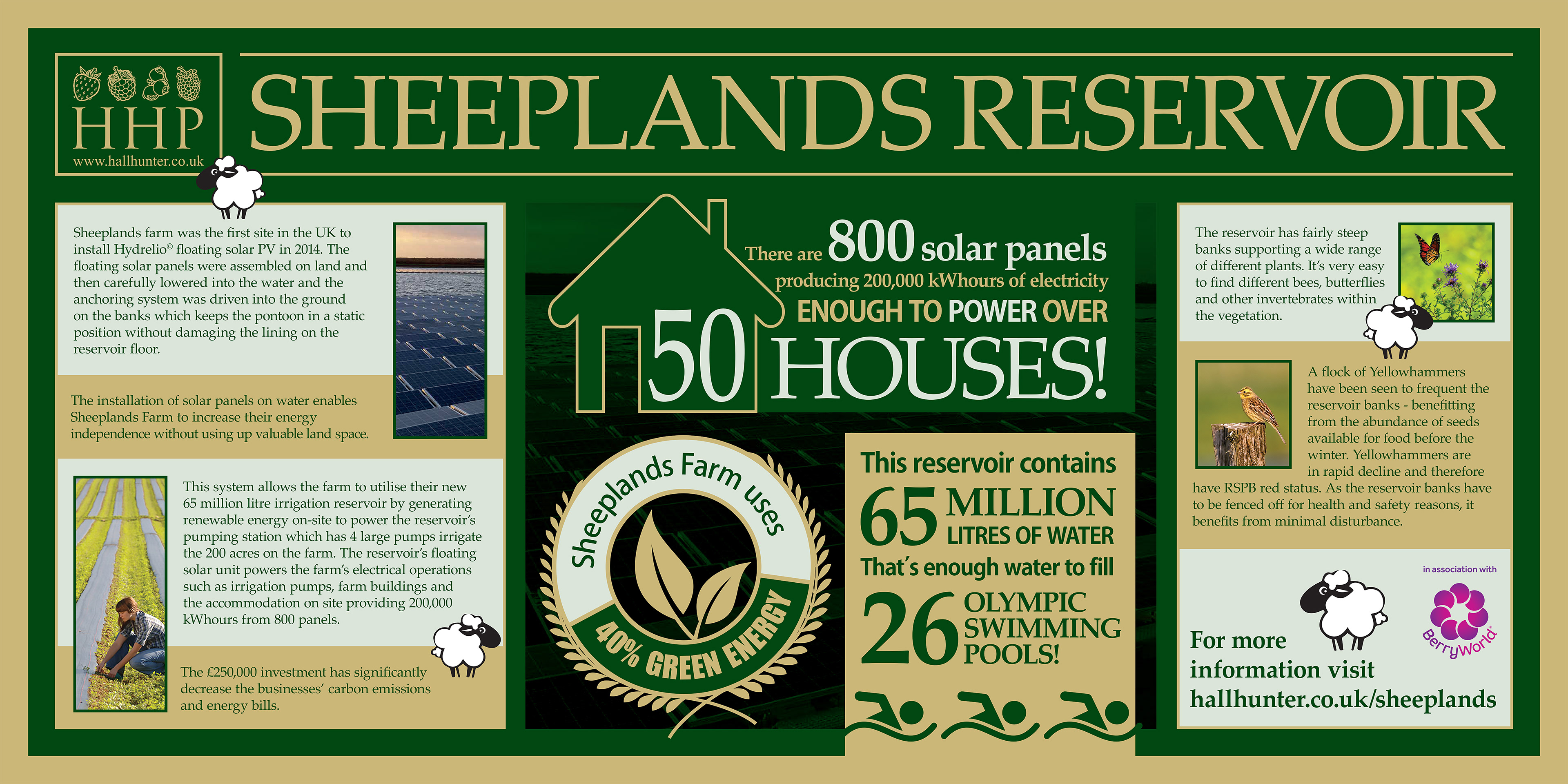 Sustainability-themed large-format infographic banner about Sheeplands Farm